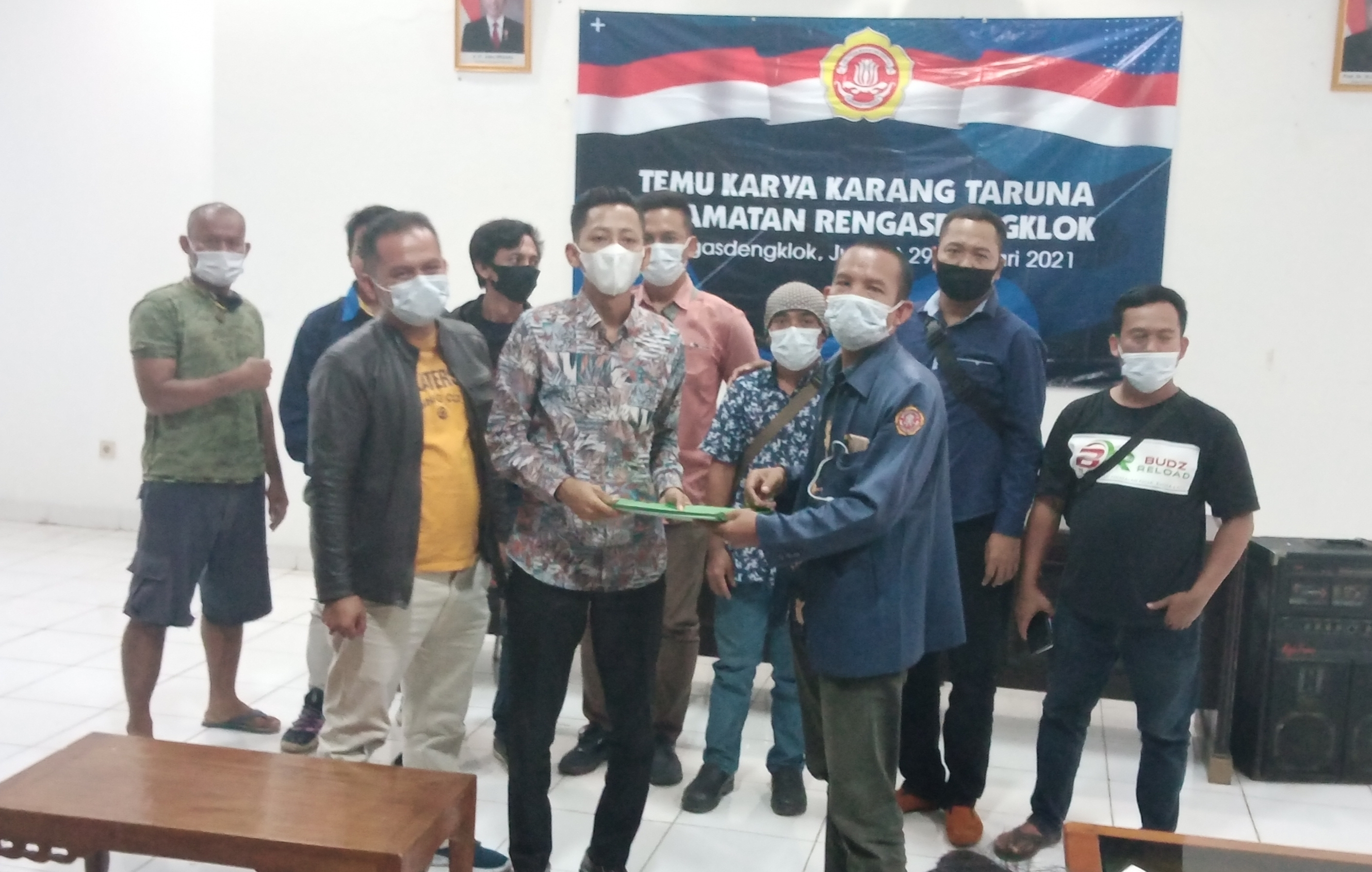 KARAWANG, Spirit – Melalui Temu Karya yang dihadiri 8 dari 9 Ketua Karang Taruna (Katar) desa, Agus Ginanjar, SH, secara aklamasi resmi Nahkodai Katar Kecamatan Rengasdengklok, masa bhakti 2021-2025, Jumat (29/1/2021). Dengan menjaga protokol kesehatan kegiatan digelar di aula kecamatan Rengasdengklok.