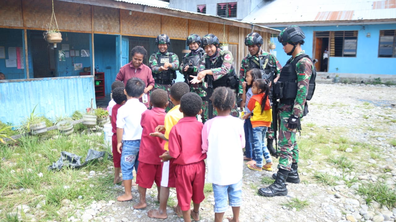 Ajarkan Cara Mencuci Tangan, Dokter Yonif PR 305 Ajak Anak-anak Papua Hidup Sehat