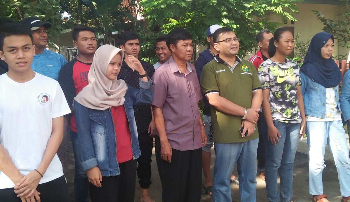 Ketua Umum PBSI Karawang Cucu Cuaca (ketiga dari kiri), didampingi Wakil Ketua I Budi Herdiawan (kaca mata) bersama atlet-atlet bulutangkis Karawang.