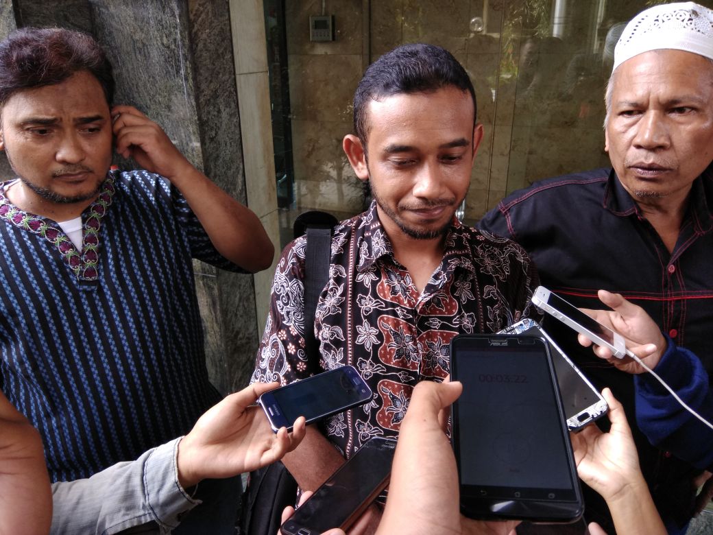 M.H Saputra mendatangi gedung SPKT Bareskrim Polri di Jalan Medan Merdeka Timur 16 Gambir, jakarta Pusat di Kantor Kementerian Kelautan dan Perikanan (KKP) Gedung Mina Bahari II Lantai Dasar,didampingi Ketua Divisi Advokasi Hukum Persatuan Alumni (PA) 212, Damai Hari Lubis dan Juru bicara PA 212, Novel Bamukmin