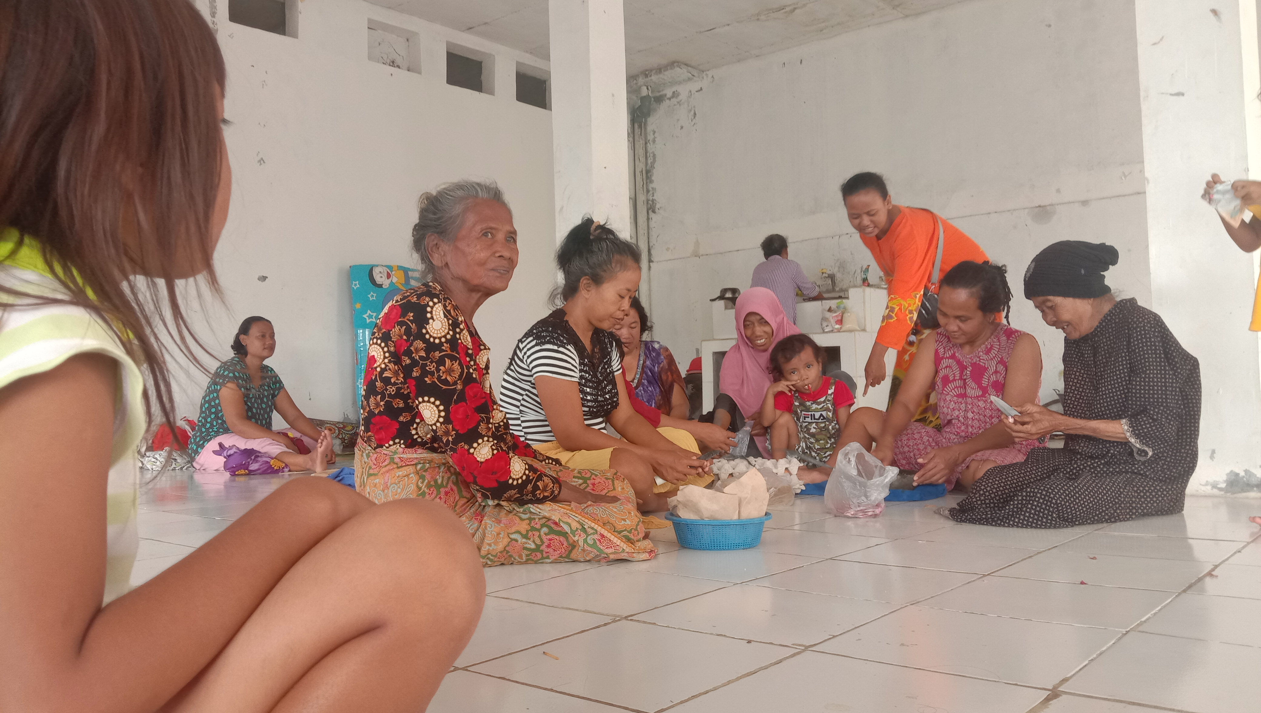 Kondisi yang hampir sama terjadi di lokasi pengungsian Dusun Krajan A RT.05 RW.02 Desa Kertasari, meski sebagian warga telah pulang ke rumahnya masing-masing, genangan air masih tersisa di sejumlah titik, bahkan masih ada genangan air setinggi lutut orang dewasa. Untuk memenuhi kebutuhan makan di pengungsian, mereka berswadaya atau memasak sendiri.