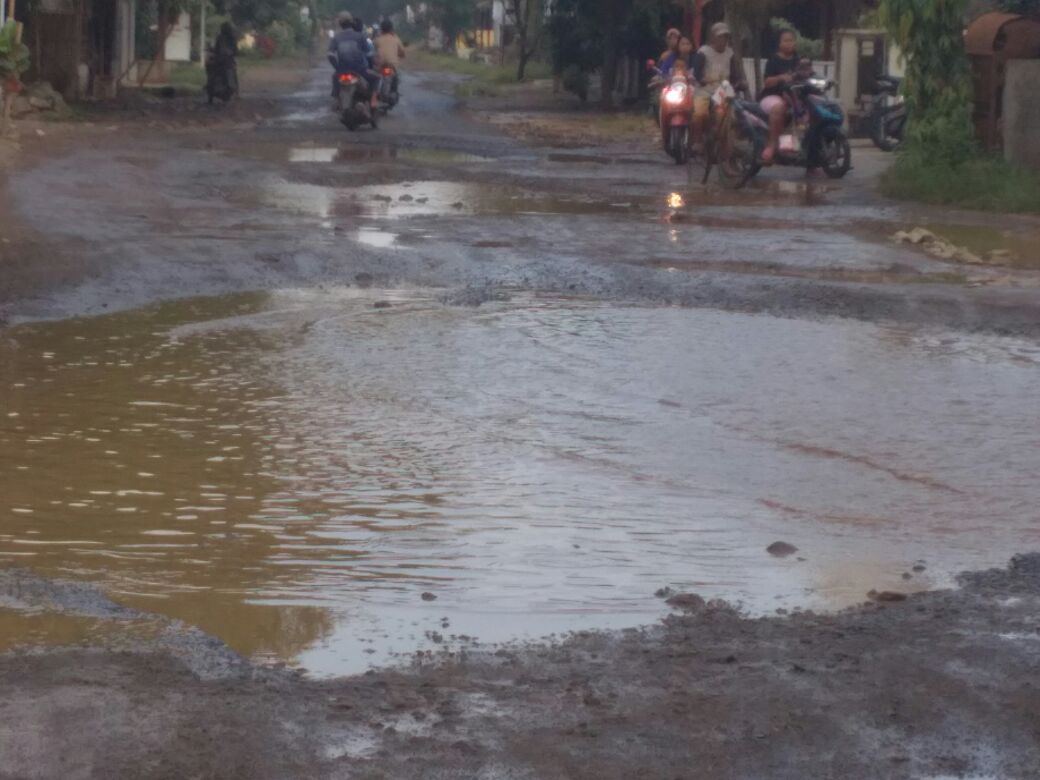 “Kondisi jalan sudah terkelupas, hot mixnya abis terlihat tanah. Berlubang lebar dan dalam. Takutnya, menimbulkan korban jiwa,” katanya.