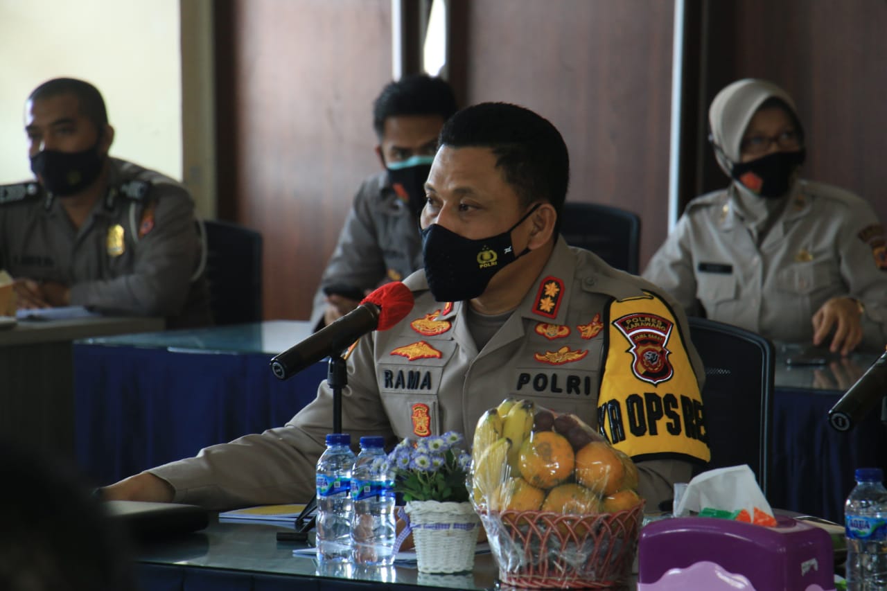 “Tidak terkecuali, masyarakat, pelaku usaha, mall, cafe, restaurant, hotel, dan ruas jalan akan kami sterilkan,” tegas Kapolres Karawang AKBP Rama Samtama Putra, pada rapat koordinasi pengamanan malam pergantian tahun baru 2021, di aula Mapolres Karawang, Selasa (29/12/2020).