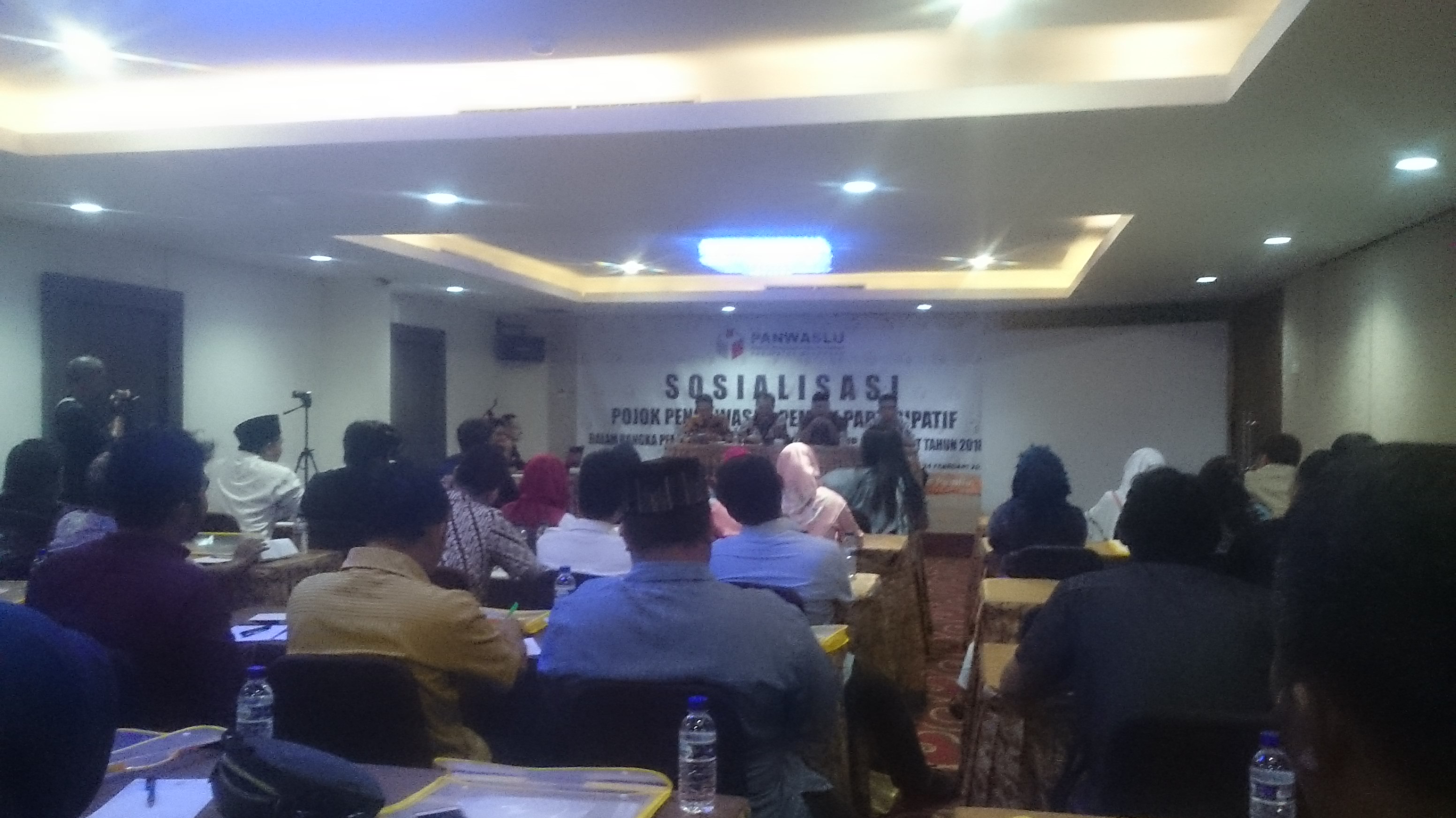 Sosialisasi Pojok Pengawasan Partisipatif dalam Pemilihan Gubernur dan Wakil Gubernur Jawa Barat Tahun 2018, digelar oleh Panwaslu Kabupaten Karawang, Sabtu (24/2) di Ballroom Grand Citra Hotel Karawang.