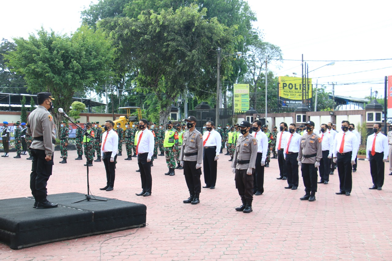 KARAWANG, Spirit–Kepala Kepolisan Resor Karawang Polda Jabar AKBP Rama Samtama Putra pimpin pelaksanaan Apel Gelar Pasukan Operasi Lilin Lodaya 2020 disertai pemberian Penghargaan Polri dilanjutkan dengan BB Miras Hasil Operasi. Senin (21/12/2020) dihalaman apel Mako Polres Karawang.