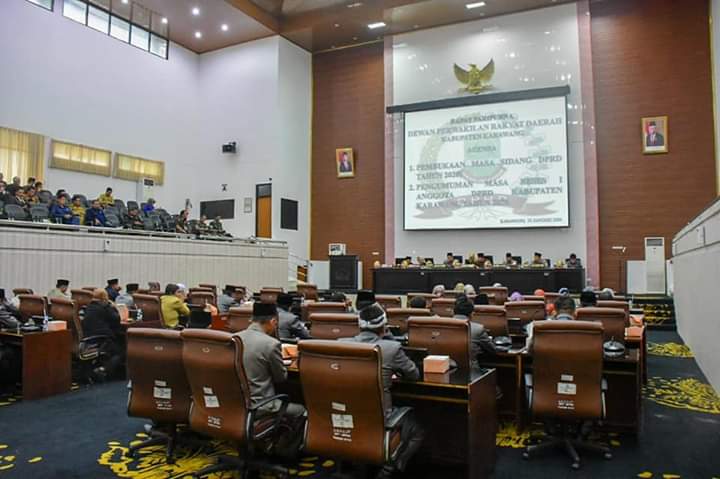 KARAWANG, Spirit – Dengan agenda, membuka masa sidang dan pengumuman masa reses 1 anggota DPRD tahun 2020, DPRD Karawang gelar sidang paripurna perdana di tahun 2020, Jumat (31/1/20).
