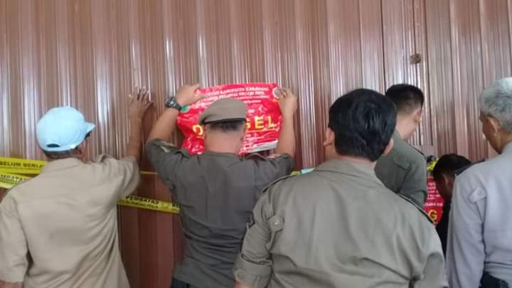 Polsek Rengasdengklok dampingi Sat Pol PP Kabupaten Karawang segel cafe Warung Tangkahan yang berlokasi di Dusun Krajan Timur RT.006/002 Desa Amansari Kecamatan Rengasdengklok, Senin (23/9/2019).