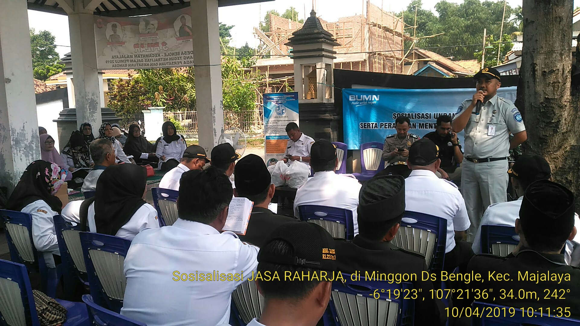 KARAWANG – PT Jasa Raharja (JR) Karawang bersama Unit Laka Lantas Polres Karawang berikan pemahaman jaminan Asuransi Kecelelakaan kepada aparatur Desa Bengle, Kecamatan Majalaya Karawang, Rabu (10/4/2019).