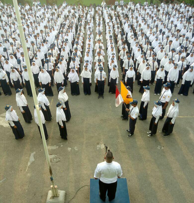 SMPN 3 Karawang Timur tak hanya fokus mendidik siswanya agar berprestasi di bidang akademik, tapi juga serius menggalakan pendidikan karakter salah satunya dengan rutin menggelar upacara penurunan bendera.