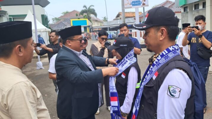 KARAWANG, Spirit – 502 jemaah haji Kloter JKS 42 dan Kolter JKS 43 secara bersamaan dilepas keberangkatannya oleh kepala kantor Kementerian Agama Karawang, pada