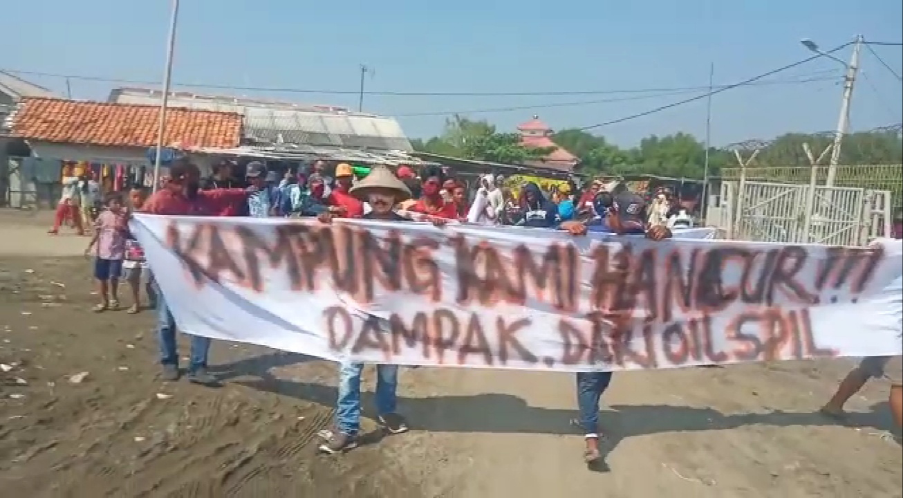 KARAWANG, Spirit – Tagih janji untuk perbaiki kerusakan lingkungannya dan janji pembayaran kompensasi final terhadap warga terdampak pencemaran lingkungan oleh limbah minyak mentah (Oil