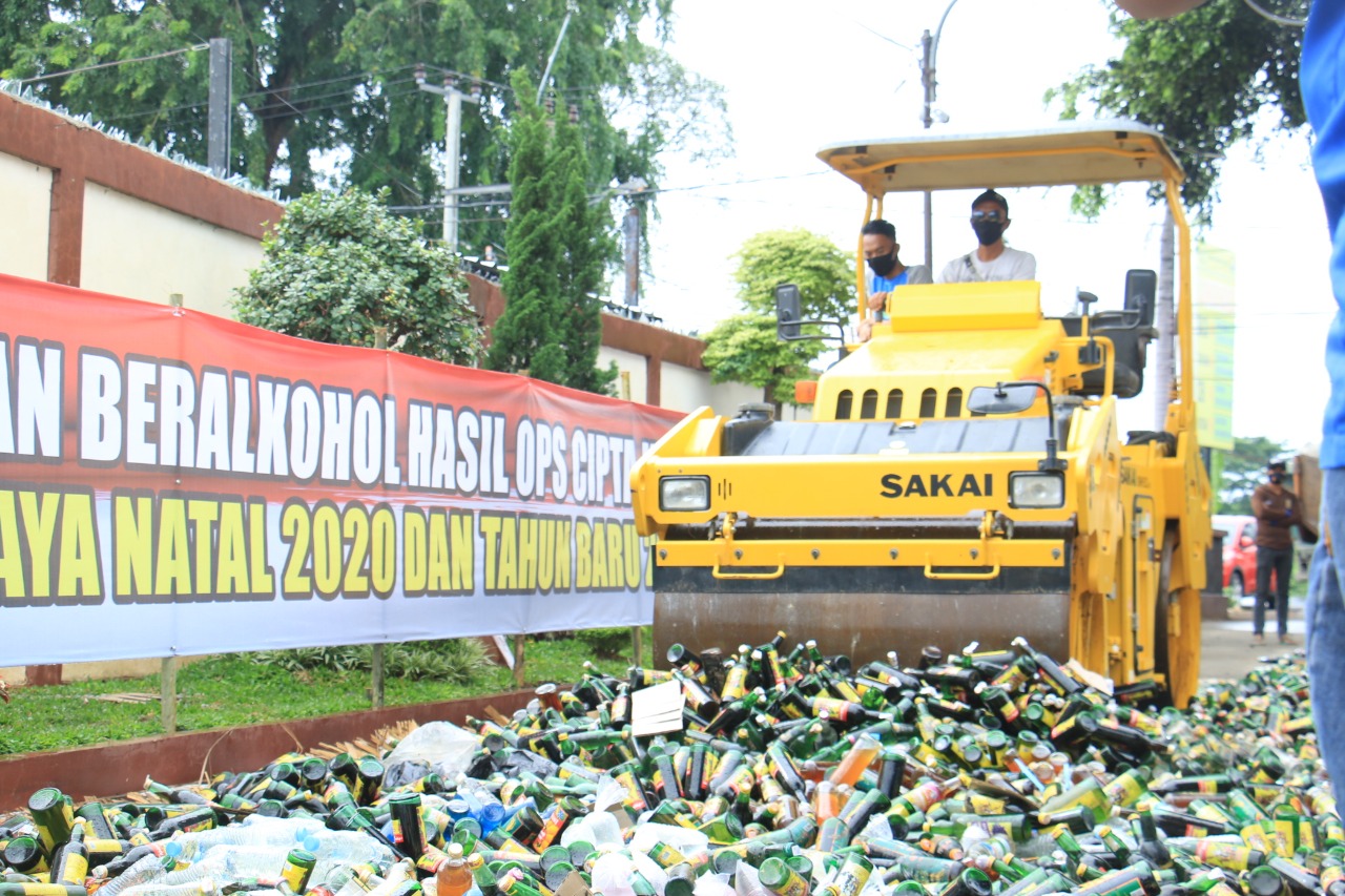 Antisipasi Tahun Baru 2021, Polres Karawang Musnahkan Ribuan Miras