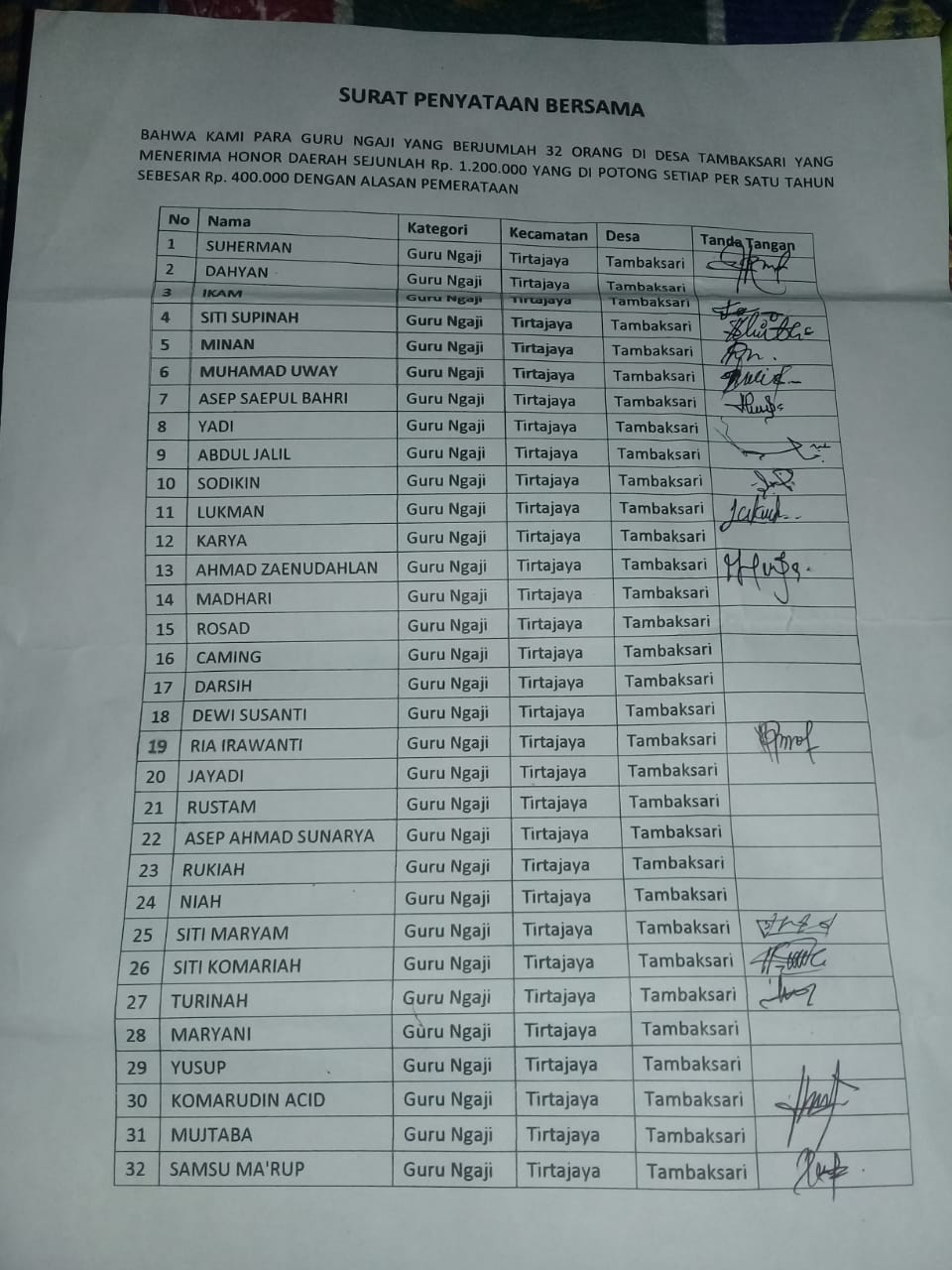 Dengan Dalih Pemerataan, Oknum Aparat Desa Tambaksari Diduga Lakukan Pungli atas Honor Sejumlah Guru Ngaji