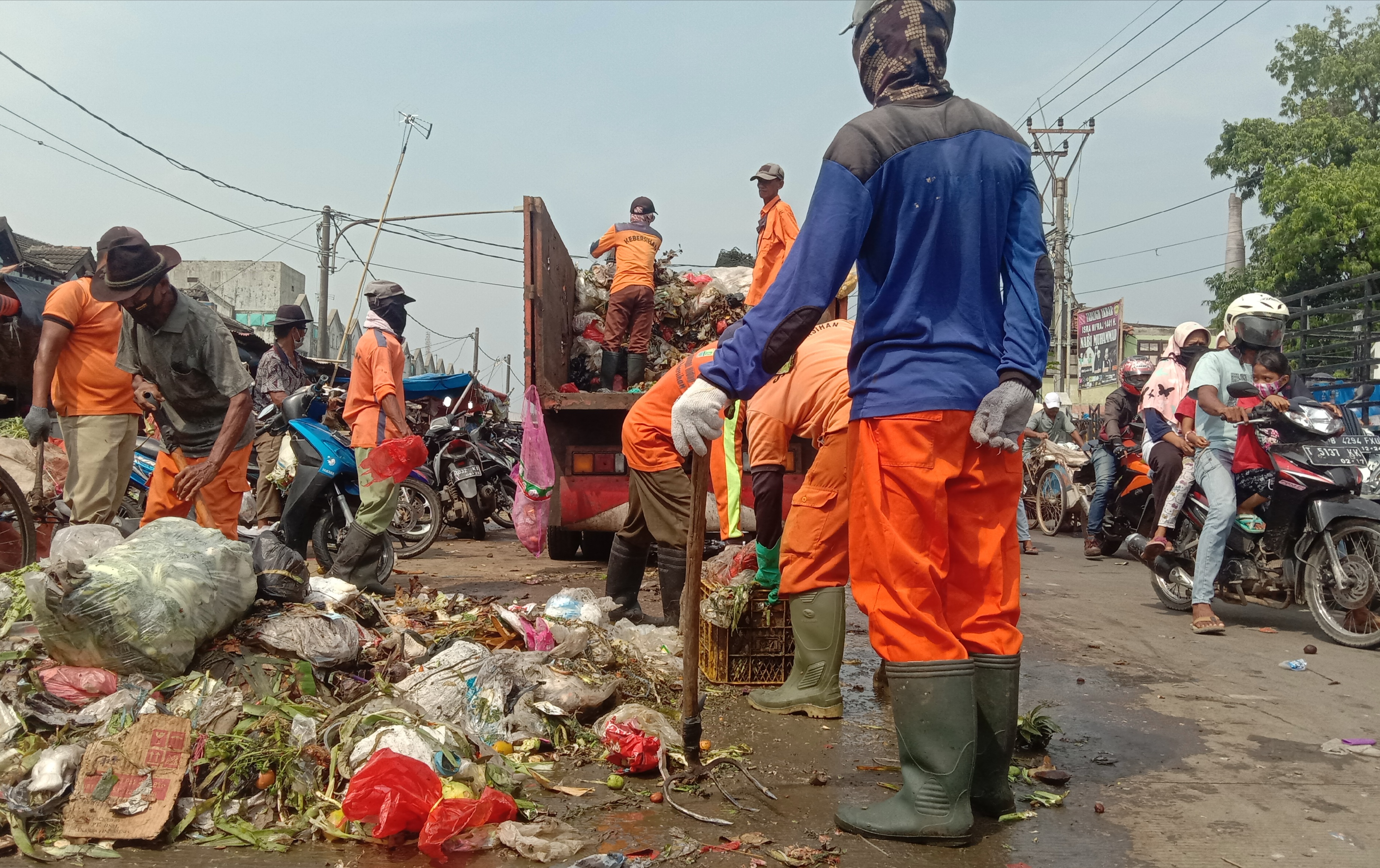 RENGASDENGKLOK, Spirit Sedikitnya 15 orang anggota TNI dari Komando Rayon Militer (Koramil) Rengasdengklok melaksanakan Jumat Bersih (Jumsih) dengan membersihkan sampah disepanjang jalan depan Pasar