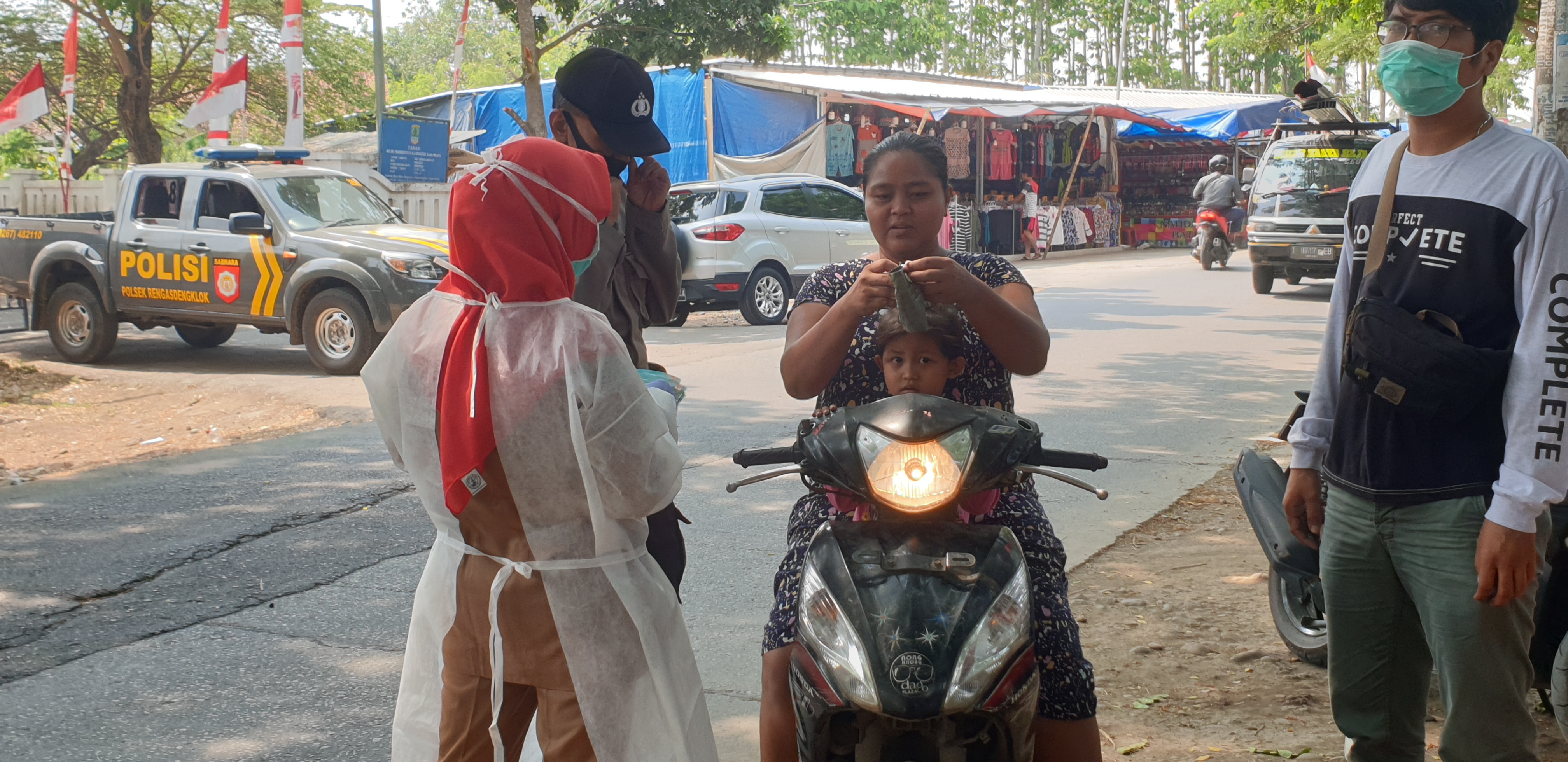 KARAWANG, Spirit – Sejumlah pengendara sepeda motor yang melintas di jalan tugu Proklamasi, Kecamatan Rengasdengklok menerima sanksi push up, hingga squat jump karena kedapatan