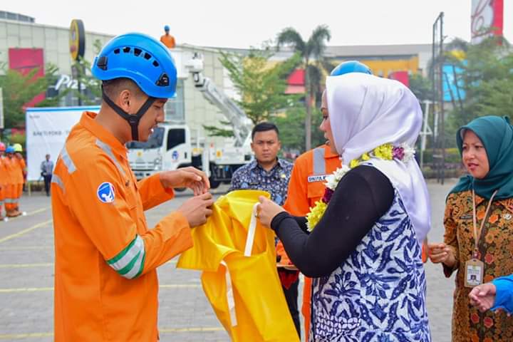 KARAWANG, Spirit – Bupati Karawang, Hj. Cellica Nurrachadian,a apresias ppelaksanaan kegiatan hBakti Pekerjaan Dalam Keadaan Bertegangan (PDKB) PLN Unit Induk Distribusi Jawa Barat, Unit Pelaksana Kabupaten Karawang tahun 2019, yang digelar di area parkir Mall Technomart, Karawang, Kamis (17/10/2019).